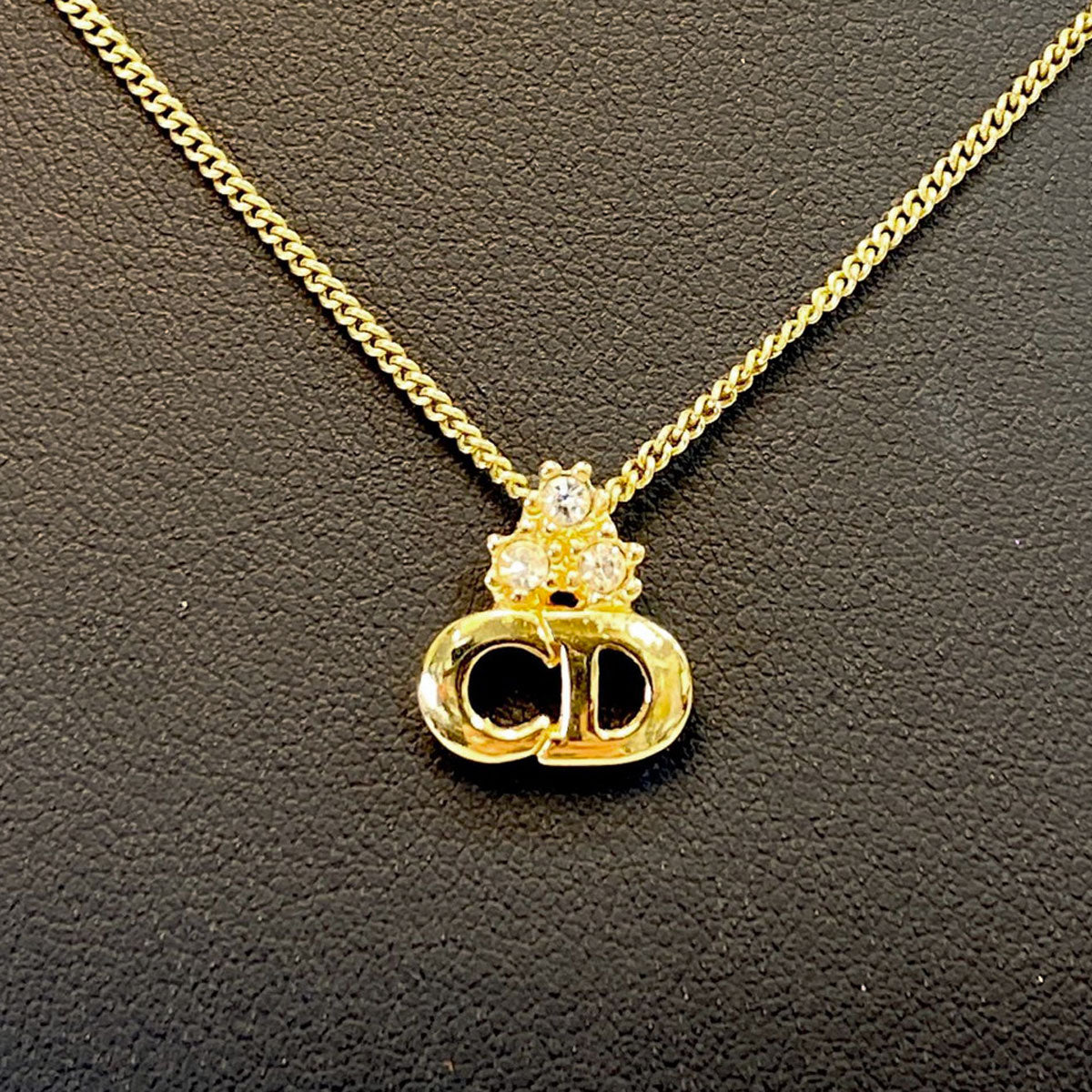 Christian Dior ディオール ロゴ ストーン ゴールド ネックレス 管理番号:9514
