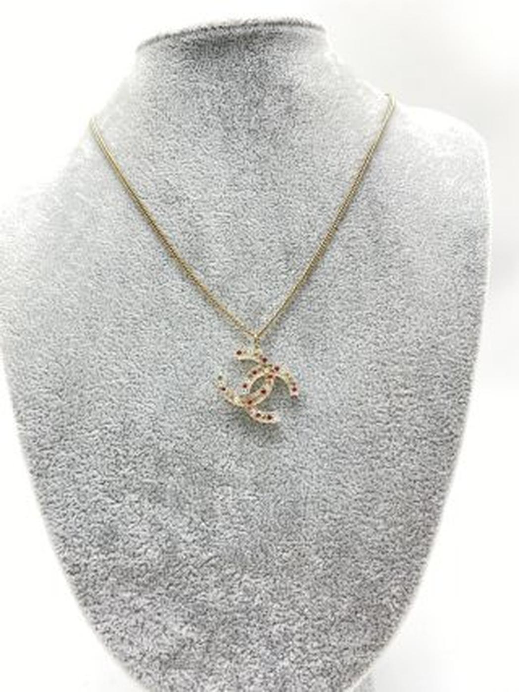 CHANEL Coco Mark Necklace, Multicolored Rhinestones, GP, 2004 Model, Women's, Plastic, Reference Number: 8777