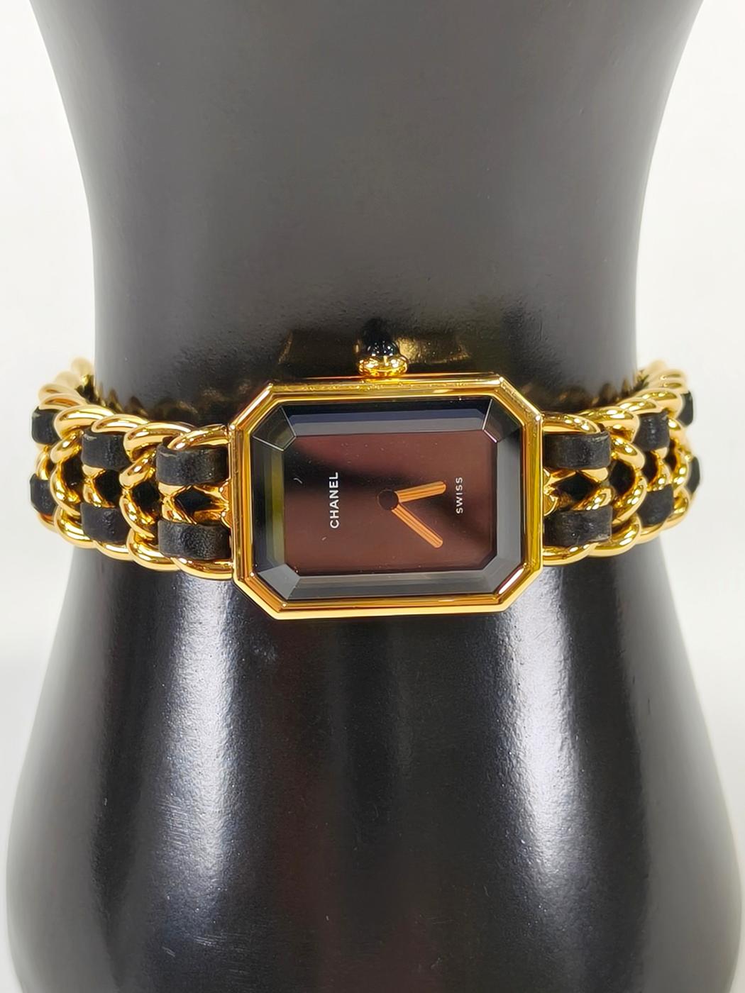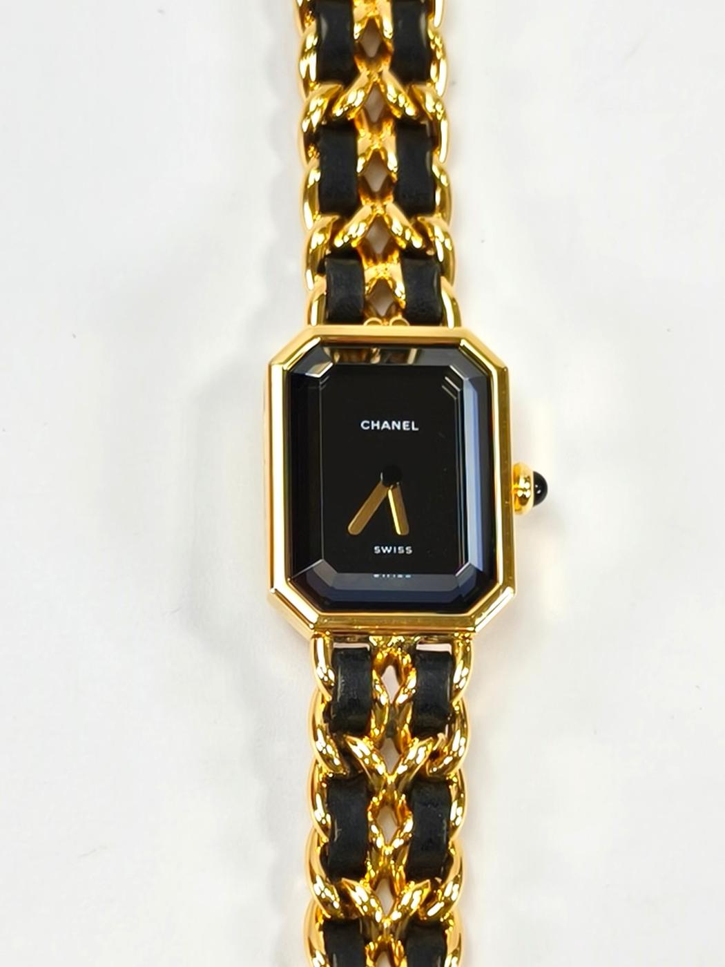 CHANEL シャネル プルミエール Lサイズ オクタゴナル チェーンブレス レザーベルト クオーツアナログ ゴールド 管理番号:10455