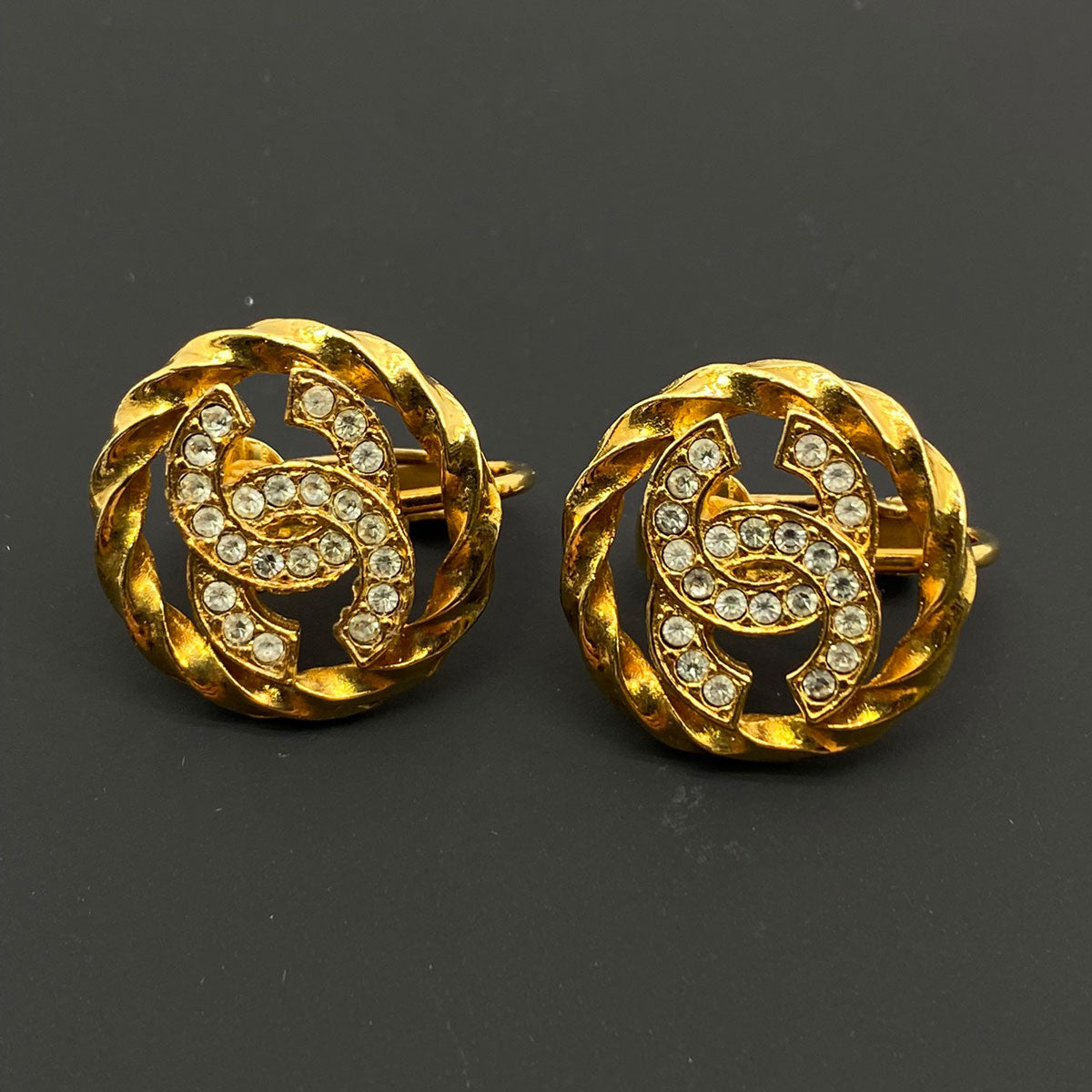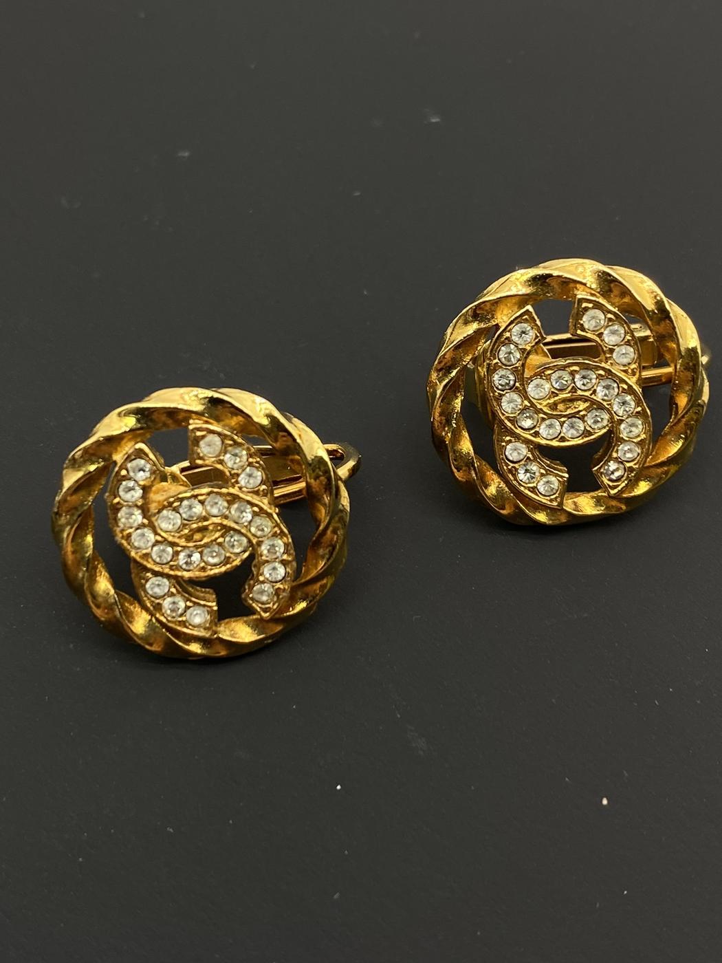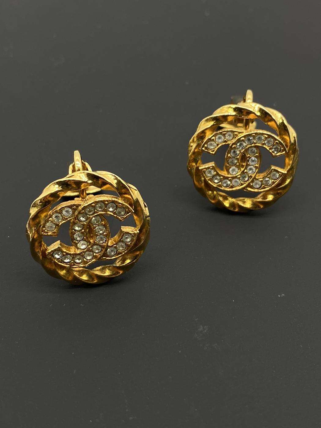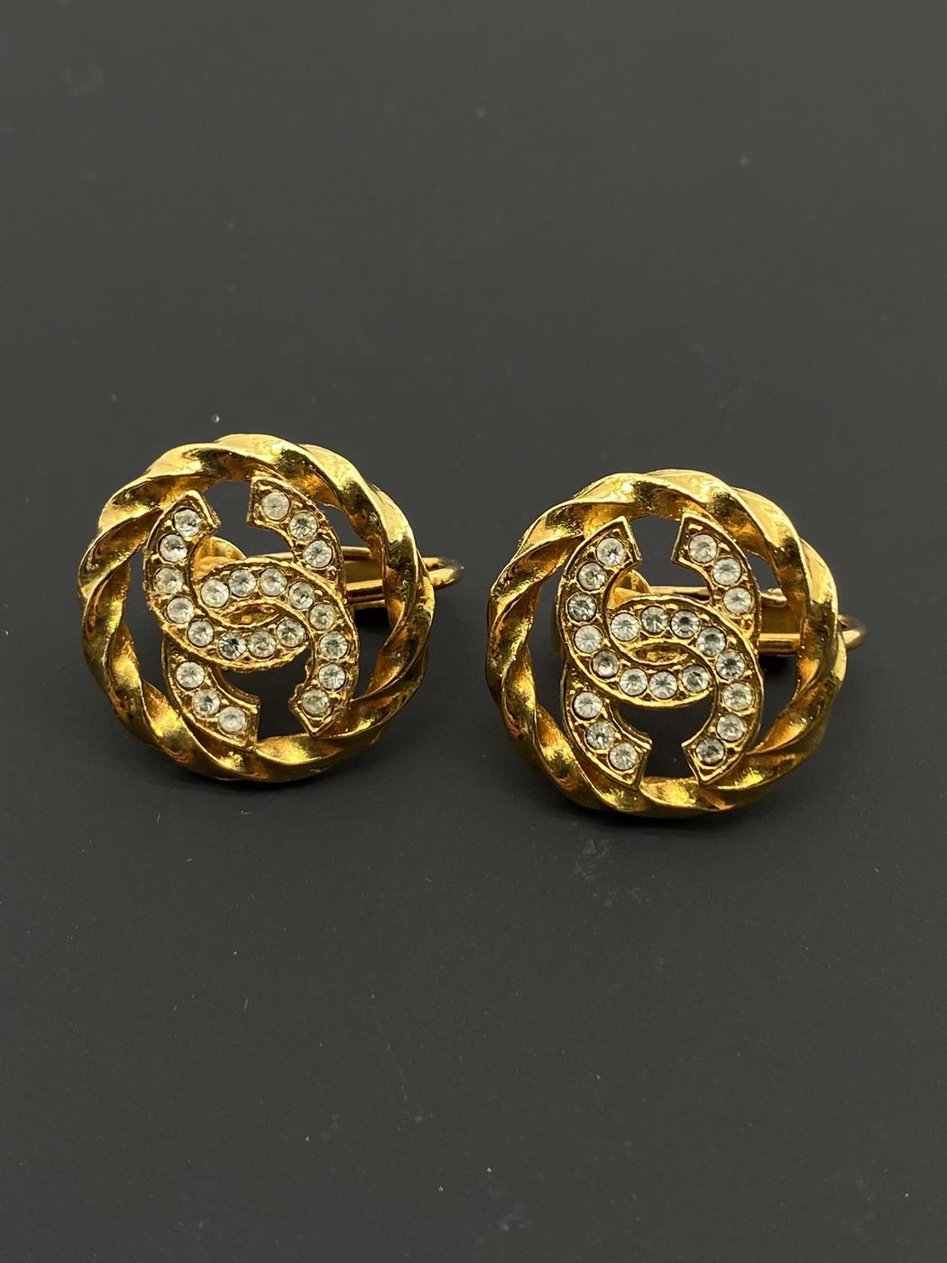 CHANEL シャネル ラインストーン ロゴイヤリング 金 ココマーク ヴィンテージ イヤリング レア 管理番号:7843
