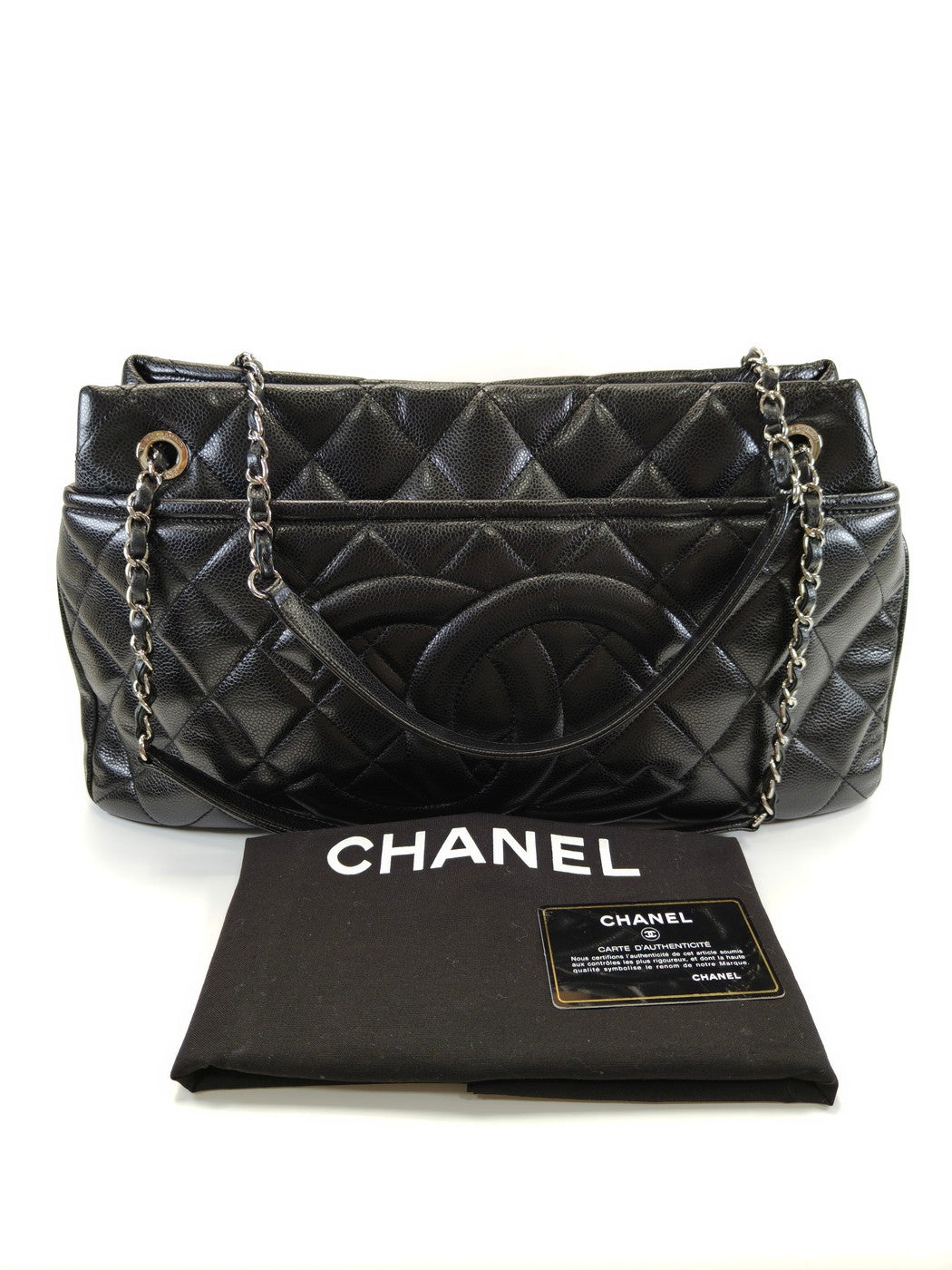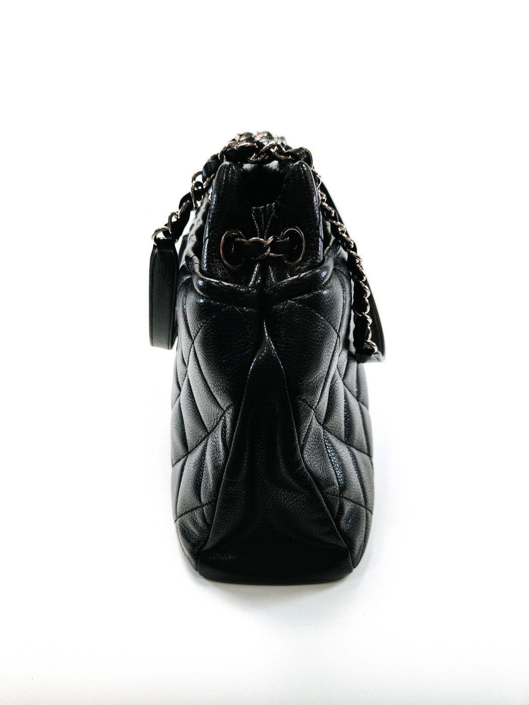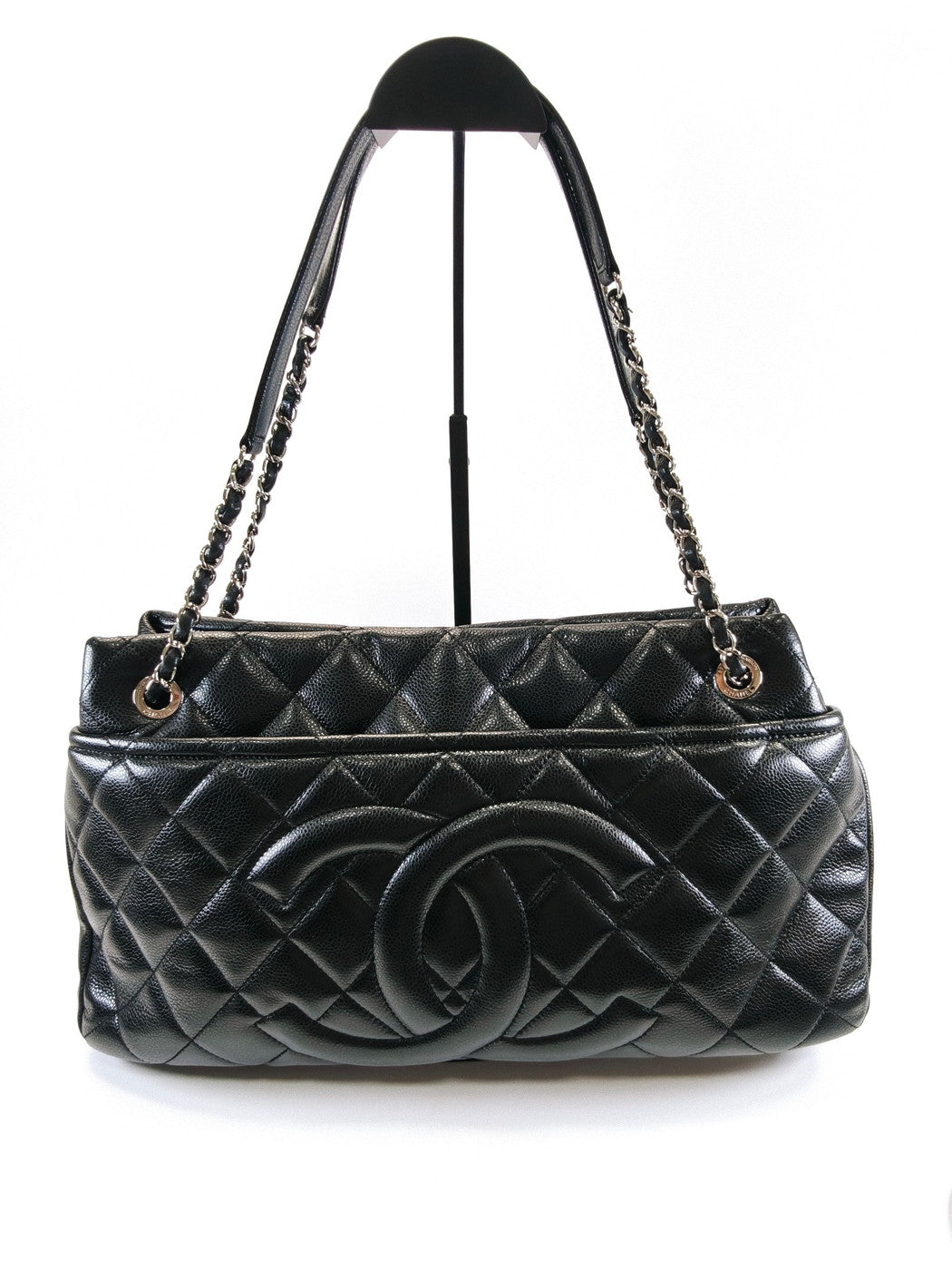 CHANEL シャネル マトラッセ ココマーク トートバッグ チェーンショルダー キャビアスキン 黒 シルバー金具 管理番号:9702