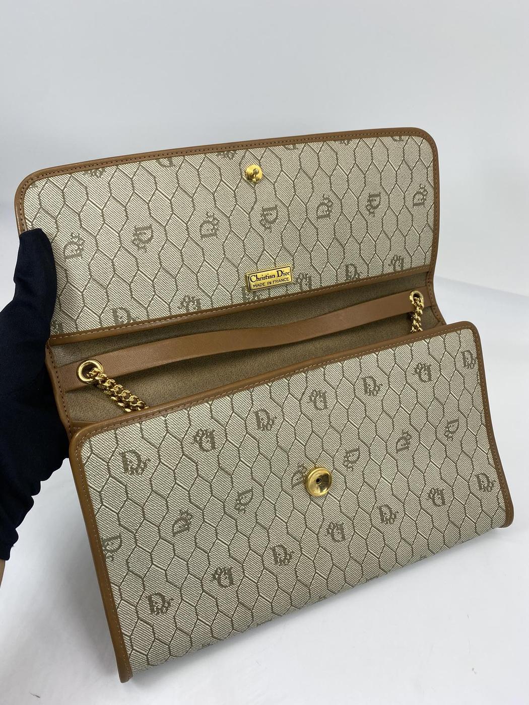 Dior クリスチャンディオール ハニカム柄 チェーンショルダーバッグ 肩掛け 斜め掛け ブラウン ベージュ 管理番号:7088