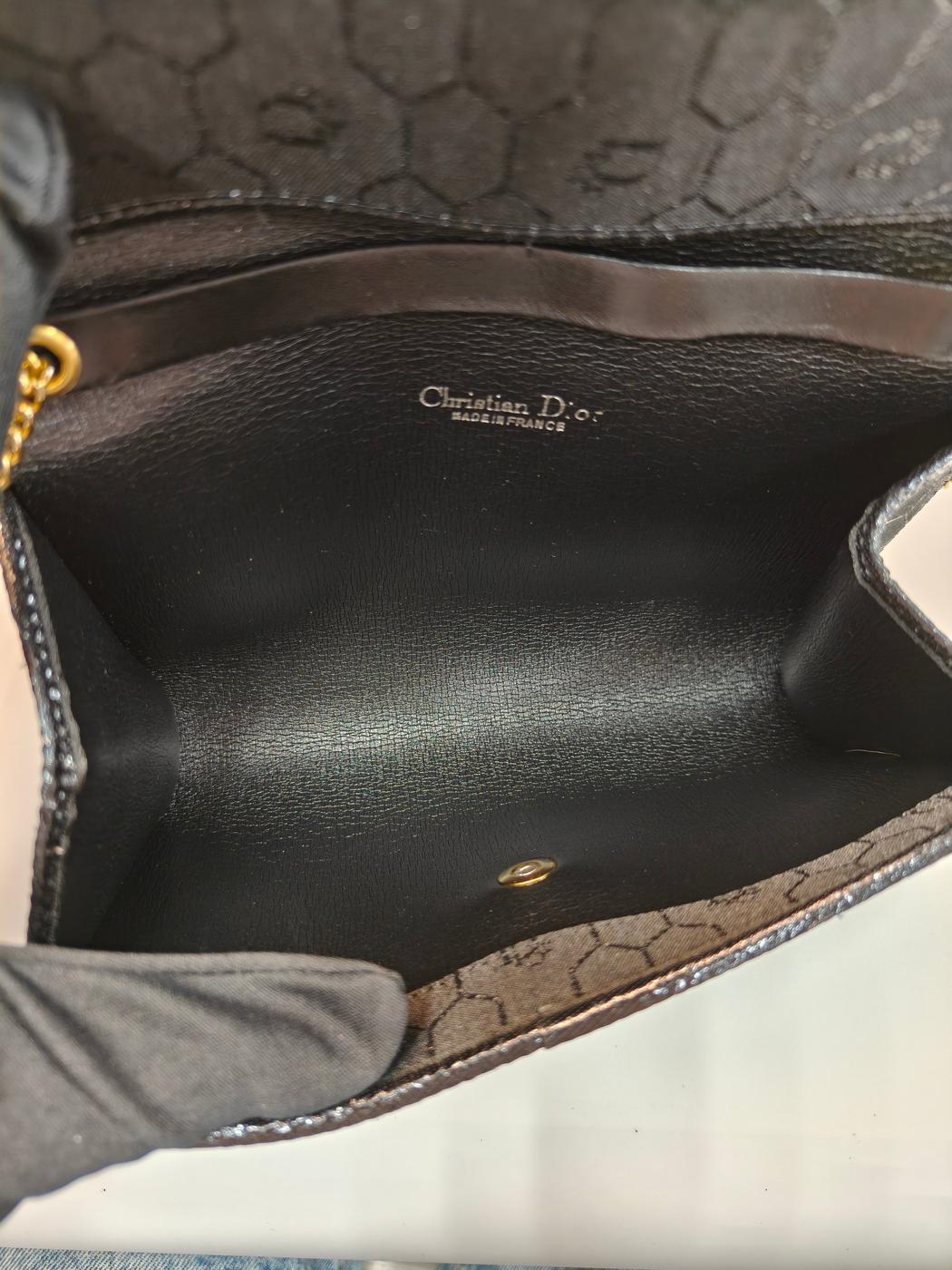 Dior ディオール ヴィンテージ ハニカム柄 ショルダーバッグ アクセサリーポーチ ポシェット ブラック ゴールド金具 管理番号:9786